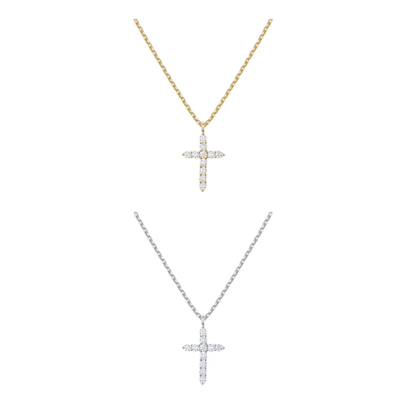 This 14K gold plated necklace features a delicate cross pendant adorned with sparkling cubic zirconia stones. Designed for women and girls, it combines timeless faith symbolism with elegant craftsmanship. The high-quality plating ensures lasting shine, making it a refined accessory suitable for everyday wear or special occasions. Its classic design complements various styles, offering a meaningful and stylish addition to any jewelry collection.