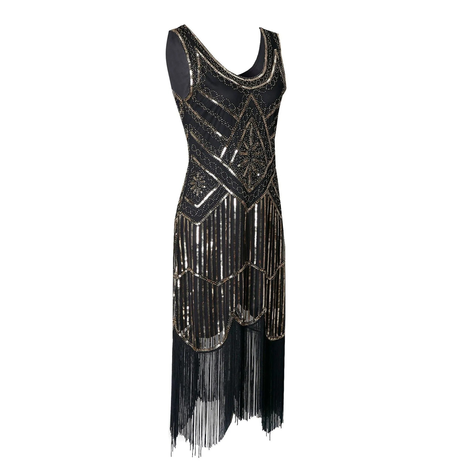 Step back in time with our 1920s Flapper Dress! Inspired by the Great Gatsby era, this dress features a round-neck design that exudes elegance and sophistication. Made with high-quality materials, you'll be the talk of the town in this one-of-a-kind dress. Perfect for themed parties or any special occasion.