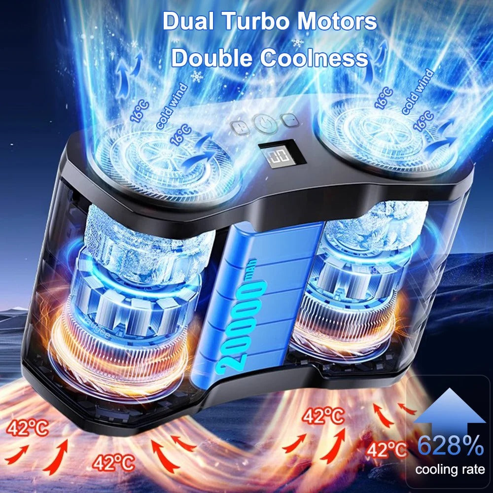 Stay cool on the go with this 20000mAh portable waist fan, featuring a double wind outlet for enhanced airflow. Its mini, wearable design clips securely to your waist, providing hands-free comfort during outdoor activities or work. The high-capacity battery ensures long-lasting cooling, making it an efficient and practical solution for personal cooling needs.