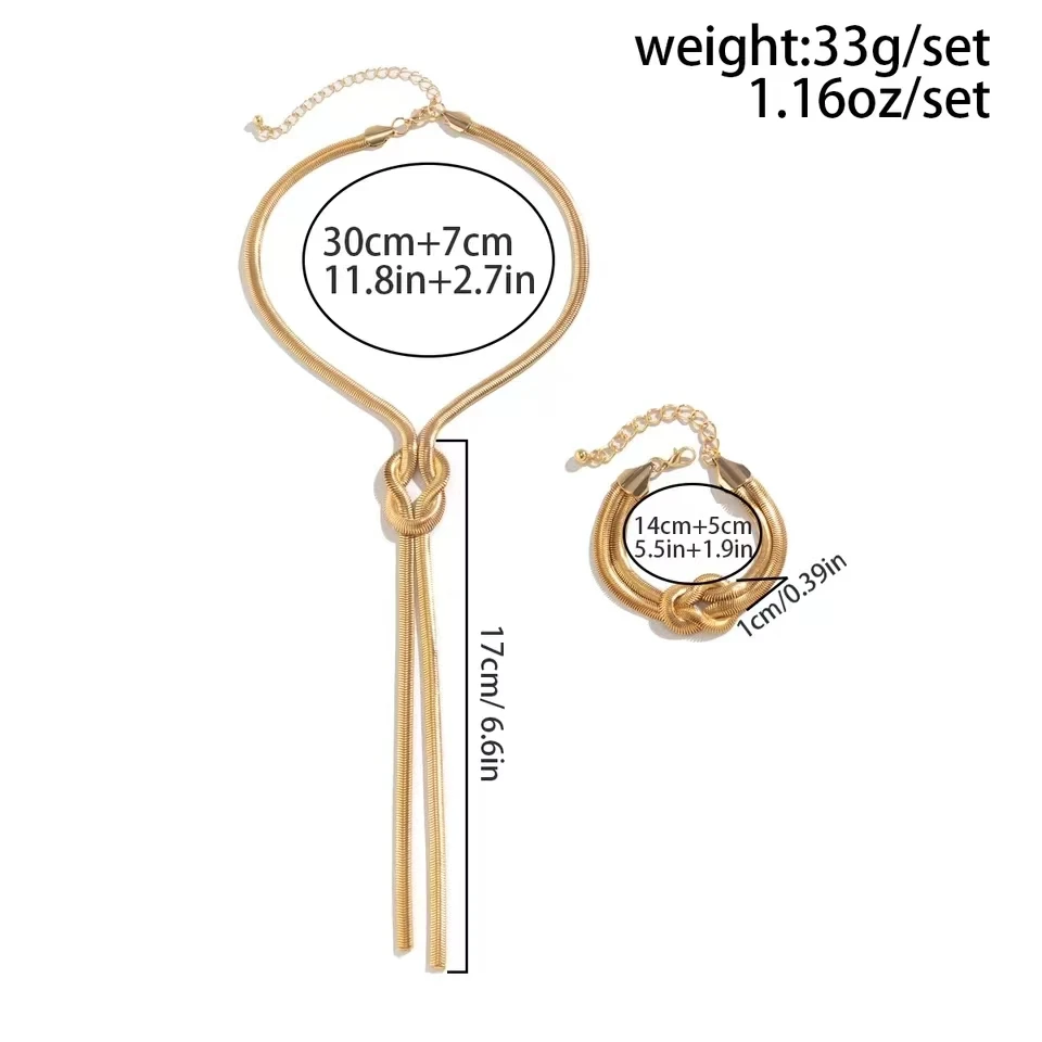 Name:2PCS Sexy Long Snake Twisted Chain Necklace Bracelet For Women Vintage Goth Tassel Choker Personality Simple Jewelry