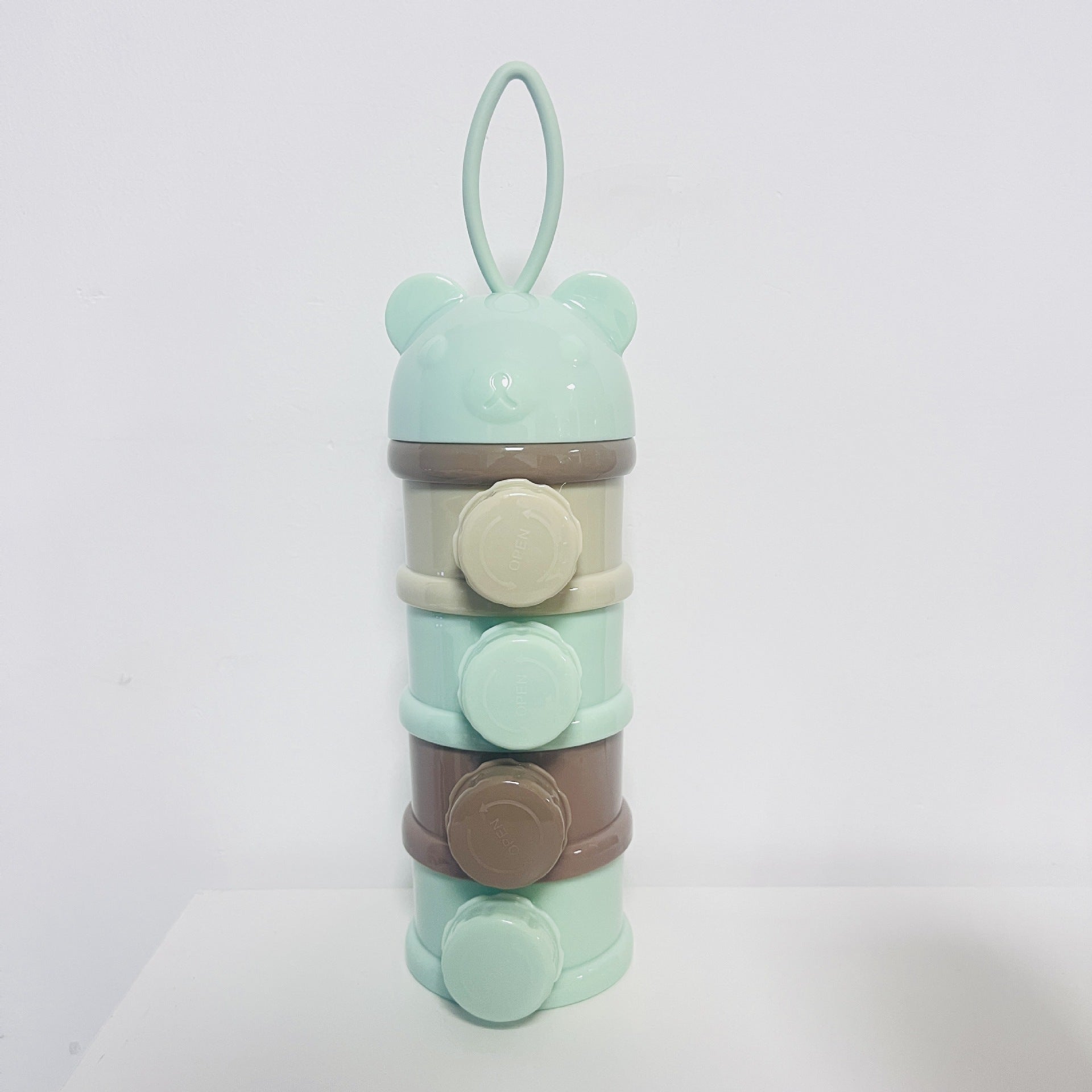 This 4-layer bear-style portable milk powder box features multiple openings for convenient access to different baby food items. Designed with practical compartments for milk powder, cereal, and snacks, this cartoon-themed container provides organized storage for infants and toddlers. The durable construction ensures food stays fresh while the playful bear design appeals to children and parents alike.