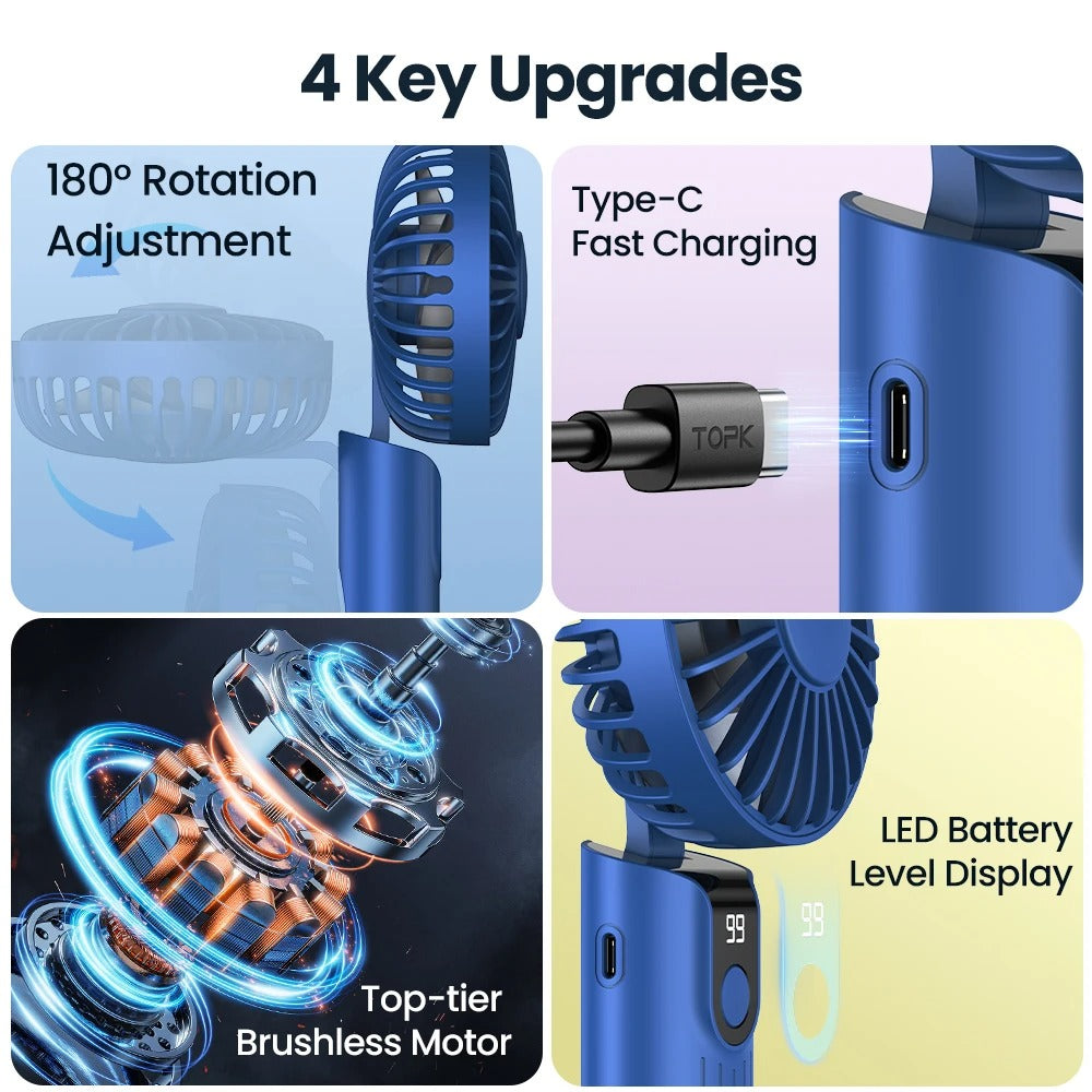 5000mAh Mini Portable Fan USB Rechargeable Hand Held Fan,Small Pocket Fan 3 Speeds