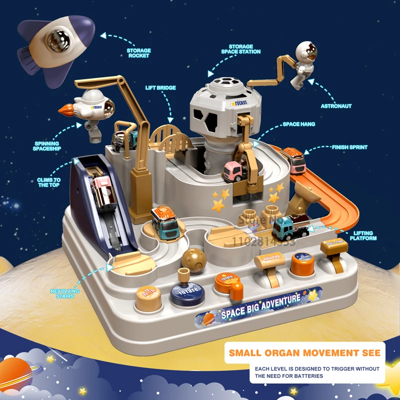 Discover endless hours of fun and learning with our Car Train Track Set! Engage children's curiosity and imagination with this educational toy that features a mechanical interactive space rocket and animals. Perfect for developing motor skills and fostering creativity.