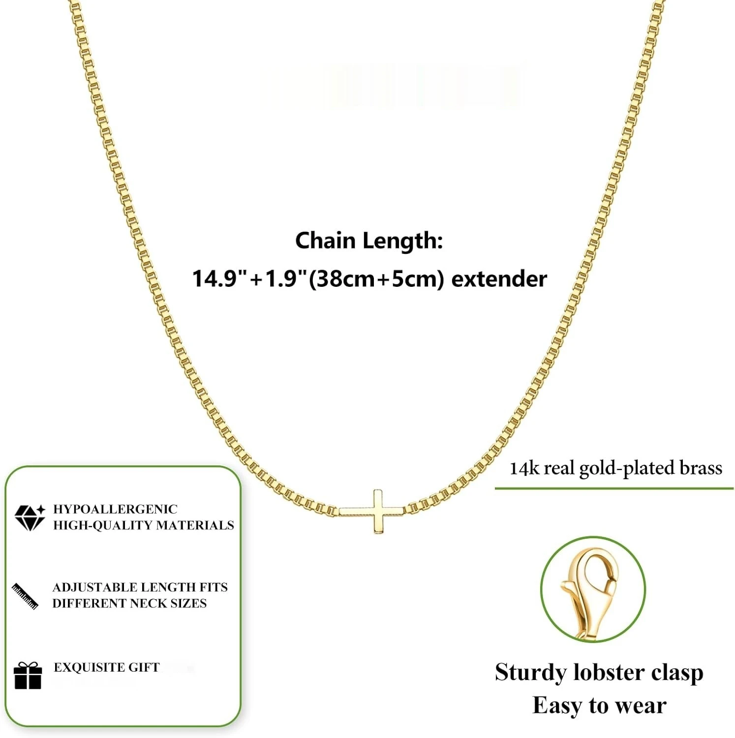 This elegant cross necklace for women features a 14K gold-plated small cross pendant suspended on a delicate choker chain. Its minimalist design offers a timeless charm, making it a versatile accessory suitable for everyday wear or special occasions. Crafted with attention to detail, this necklace combines subtle sophistication with durable plating to maintain its shine and quality over time. Ideal for those seeking a simple yet meaningful piece, it complements various styles while symbolizing faith and grace.