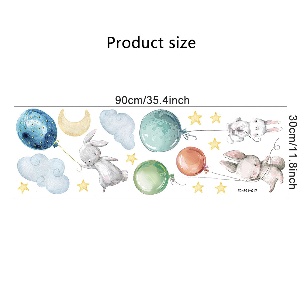 Cute Lovely Flying Rabbits Wall Stickers For Kids Balloons