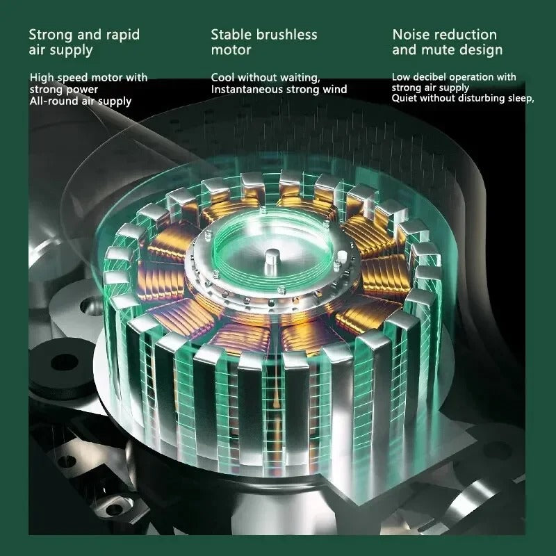3. curved large fan blade design, wind cut evenly, strong wind, up to 4.2 m / s, variable speed DC, brushless motor, stable periodic speed change, provide stable and strong power, simulate natural wind, low noise, low power consumption, quiet and comfortable