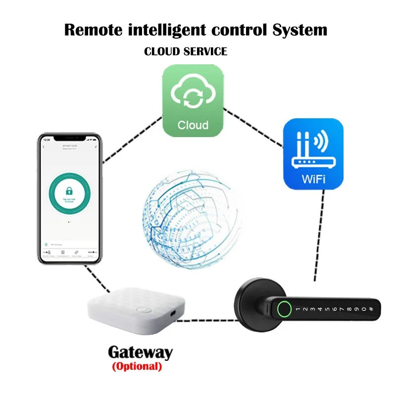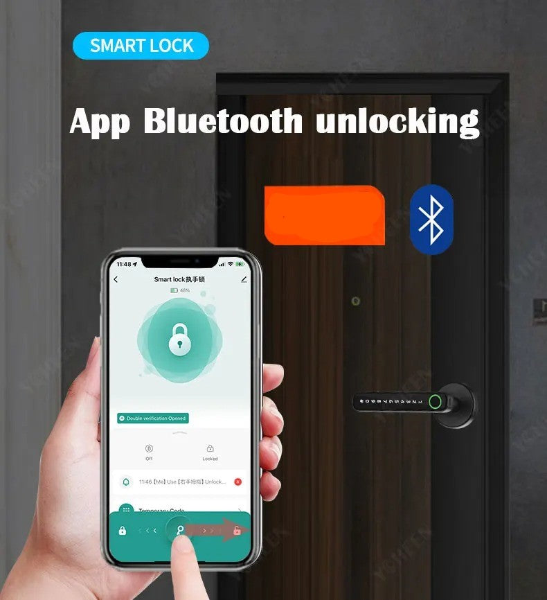 - 5 ways to unlock:Tuya App,Fingerprint,card,Password,Key.