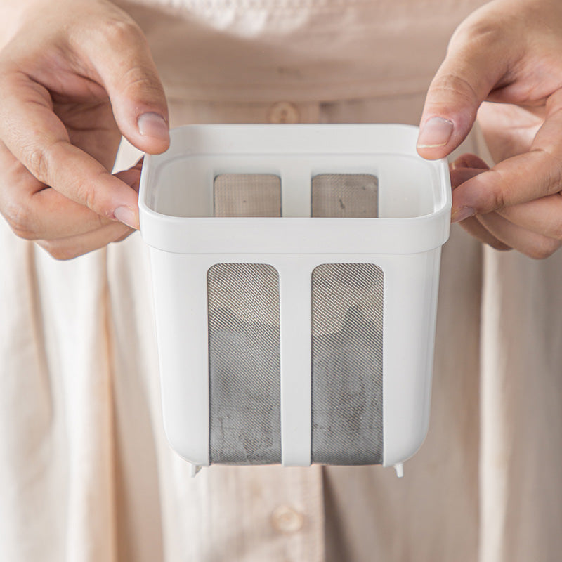 3. After the yogurt is fermented, do not stir it before pouring it into the filter. Pour it slowly into the filter. A small amount may leak out at the beginning, which is normal and will generally stabilize after a few minutes.