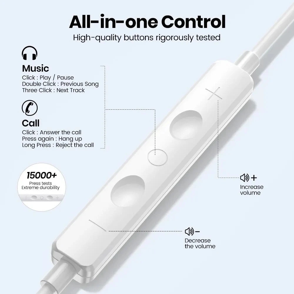 Headphones For iPhone 16 Pro Max 15 14 13 12 11 Mini in-ear Earphones X XS XR 7 8 6 6S Plus Wired Headset Phone Accessories