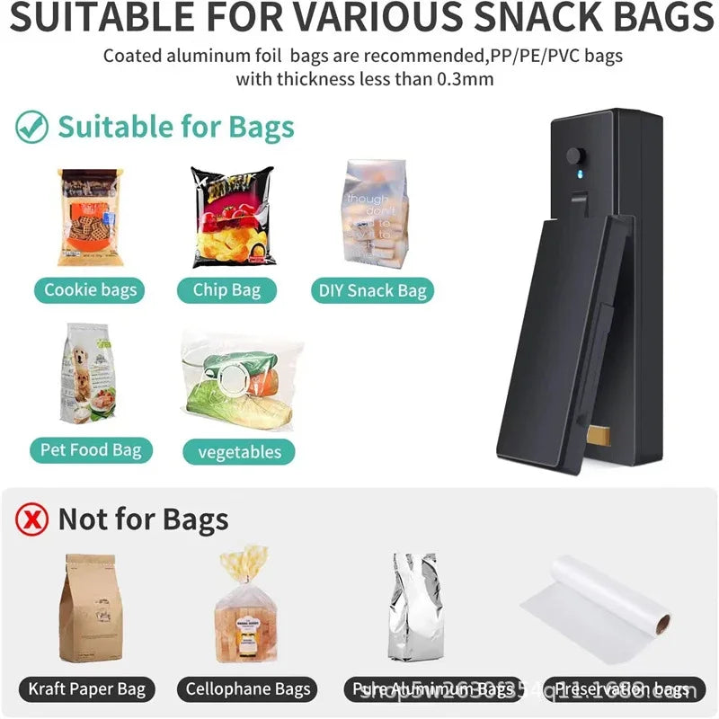 Heat Sealer USB Rechargtable Mini Sealing Machine Storage Bag Clip Mini Sealing Machine Sticker Seal for Food Snack Kitchen Gadg