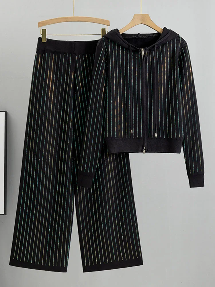 Elevate your style with our Korean Chic Knitted 2 Piece Sets, featuring a hooded knit long sleeve top and high waist sweatpants. Stay cozy and fashionable with this comfortable and loose-fitting ensemble. Perfect for any occasion, this set is a must-have for any fashion-forward woman.