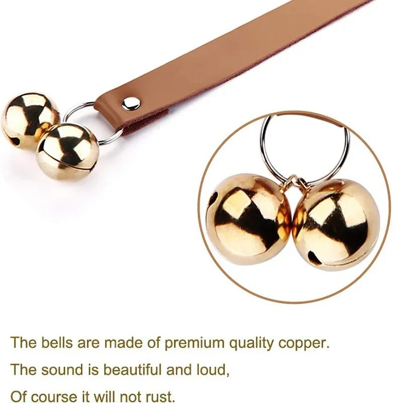 We designed this leather + brass bell combo dog doorbell because many customers wanted a more premium material, it's a step up from the polyester + iron bell combo on the market, which makes it not only a functional product for potty training, but also a great looking decorative piece!
