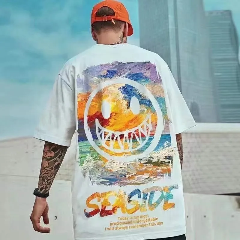 This loose-fitting T-shirt features a vintage American graffiti-inspired pattern, combining artistic expression with casual comfort. Crafted for versatility, it offers a soft feel ideal for everyday wear and suits both men and couples seeking a stylish yet relaxed outfit. Its unique print and comfortable fit make it a standout piece for those who appreciate trend-forward, effortless fashion.
