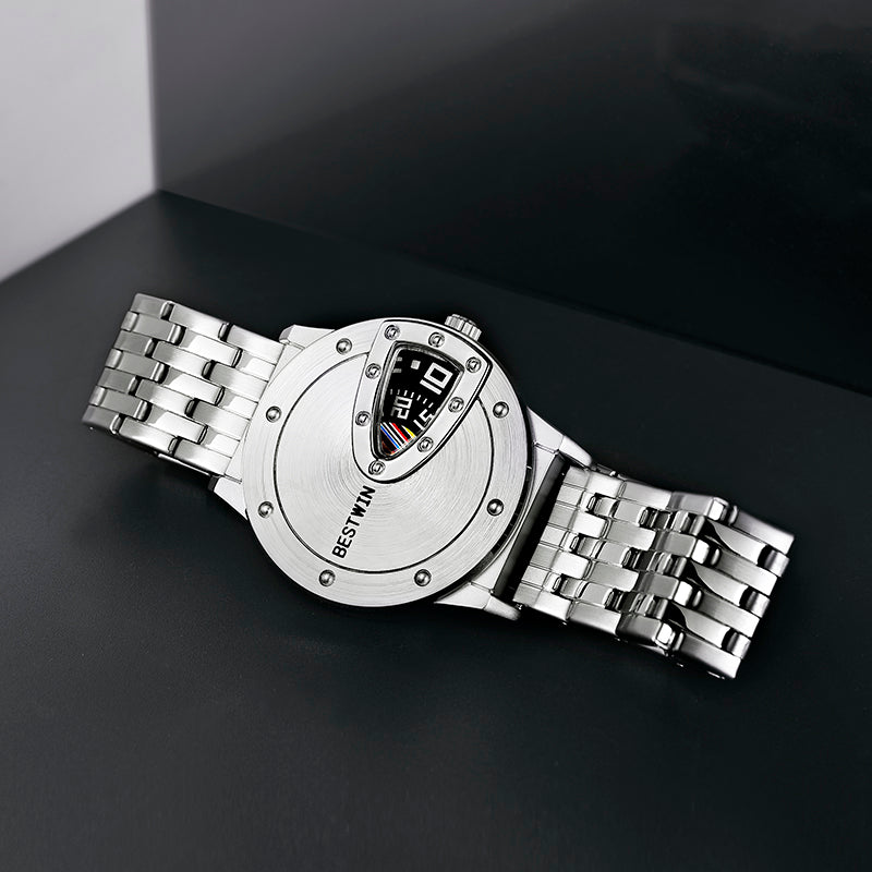 This luxury men's wristwatch combines cutting-edge quartz technology with a sleek stainless steel design, offering both precision and style. Its modern aesthetic suits fashion-forward individuals seeking a reliable timepiece that complements any outfit. Durable and sophisticated, this watch is an excellent choice for those who value craftsmanship and contemporary trends.