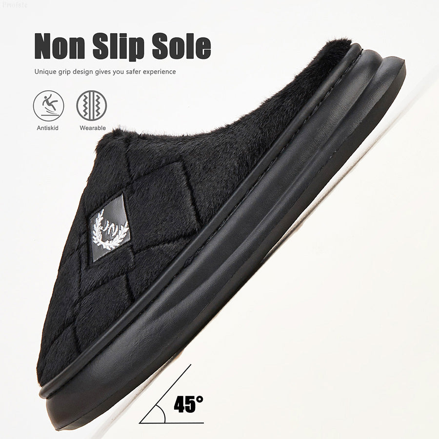 Men's House Slippers Furry Plaid cozy EVA Memory Foam Lightweight Casual Shoes
