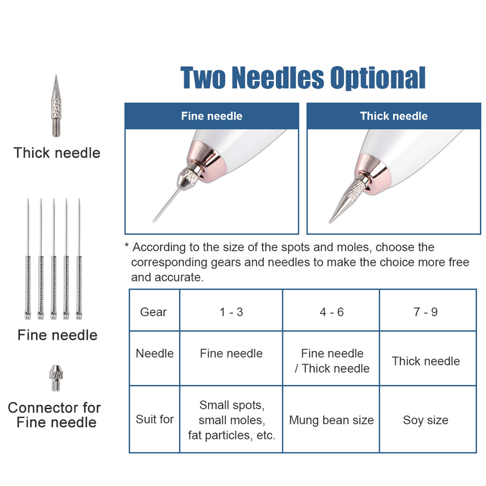 1.Adopting ionized carbonization technology, our mole removal pen can accurately control the current, quickly dilute the melanin, and restore your flawless skin without hurting the skin, bleeding and side effects.