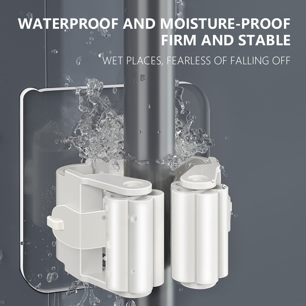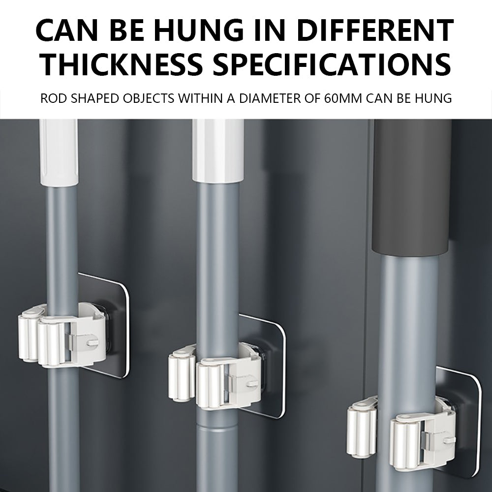 ① Mop holder Durable & Sturdy: strong adhesive mop holder tool organizer, can stick to smooth surfaces with dropping off.