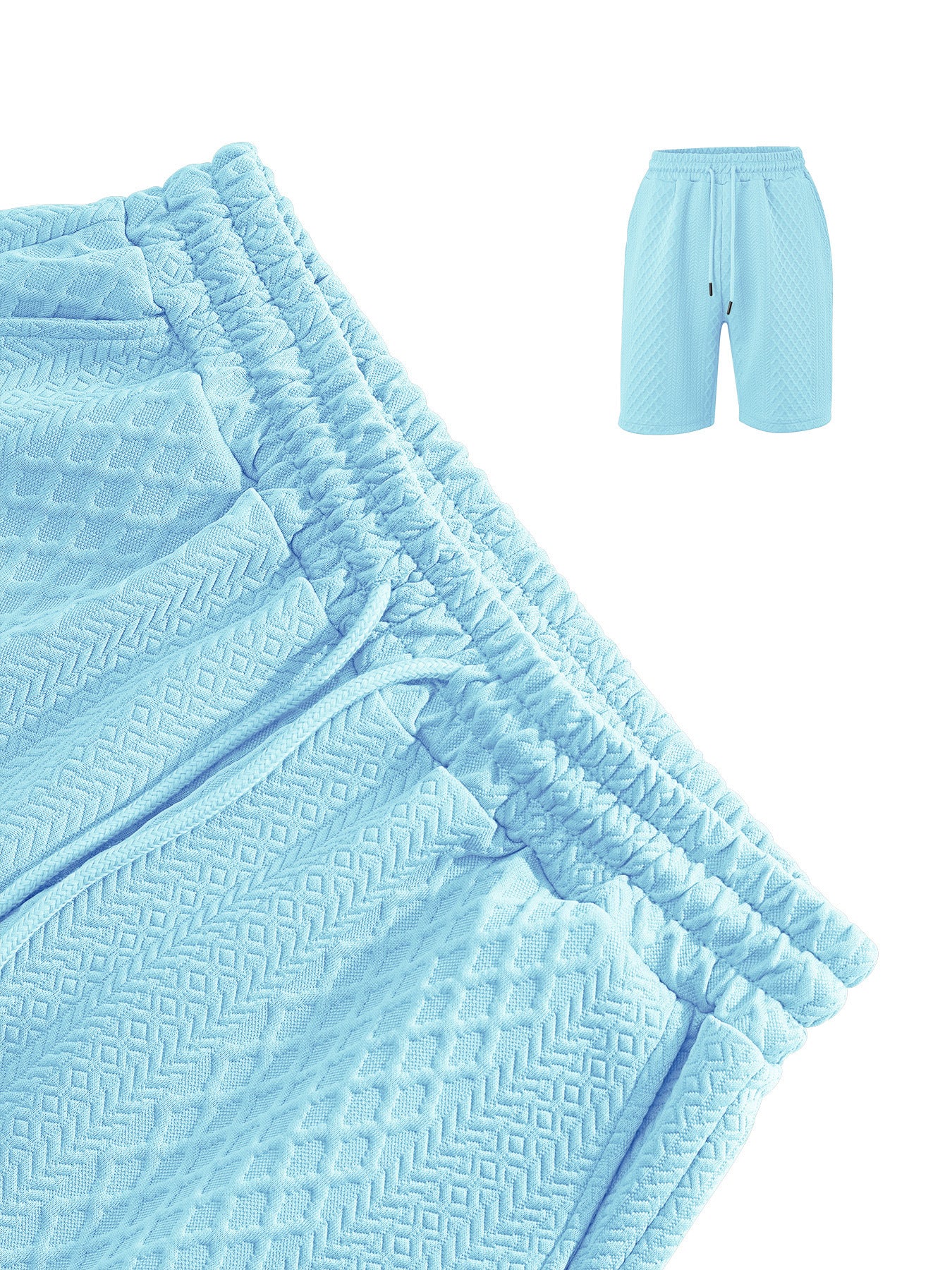 Elevate your summer wardrobe with this expertly crafted men's casual sportswear set. Featuring a short-sleeved polo shirt with a classic lapel and matching shorts, both pieces showcase a refined jacquard texture that combines style with comfort. Designed for breathability and ease of movement, this set is ideal for active days or relaxed outings, offering a sophisticated yet sporty look.
