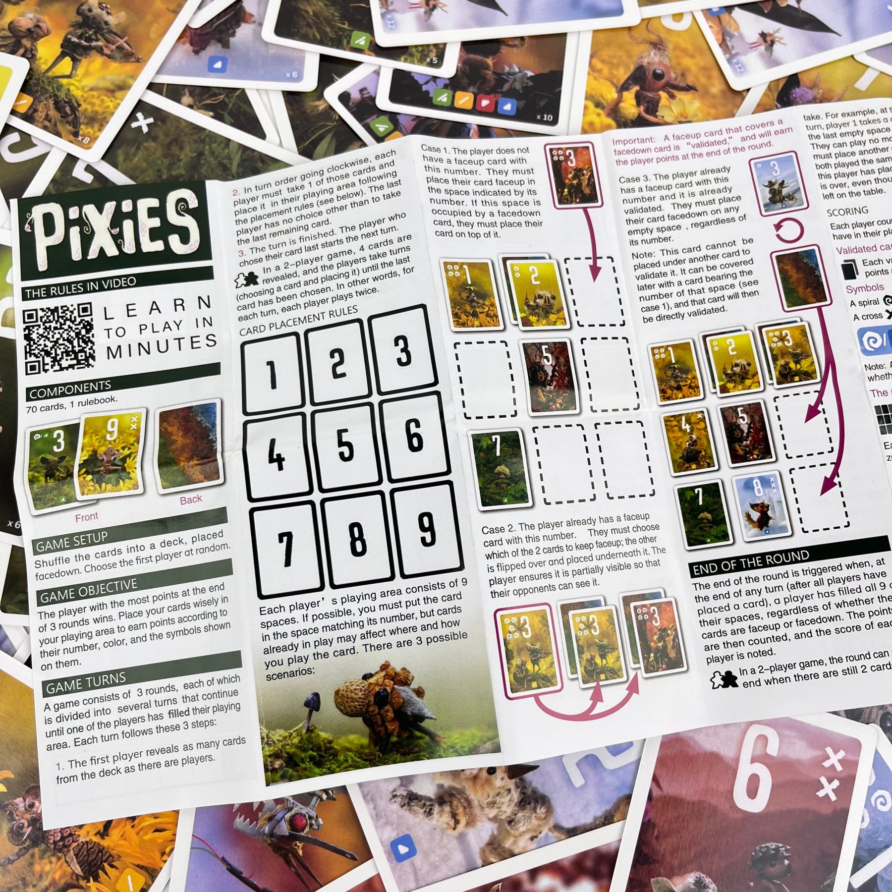 Pixies is a captivating card game designed for 2 to 5 players, perfect for family gatherings and social parties. With an average playtime of 30 minutes, it offers a balanced mix of strategy and fun, keeping players engaged without lengthy sessions. Its straightforward rules make it accessible, while the gameplay encourages interaction and quick thinking, making it an excellent choice for both casual and experienced players seeking an entertaining group activity.
