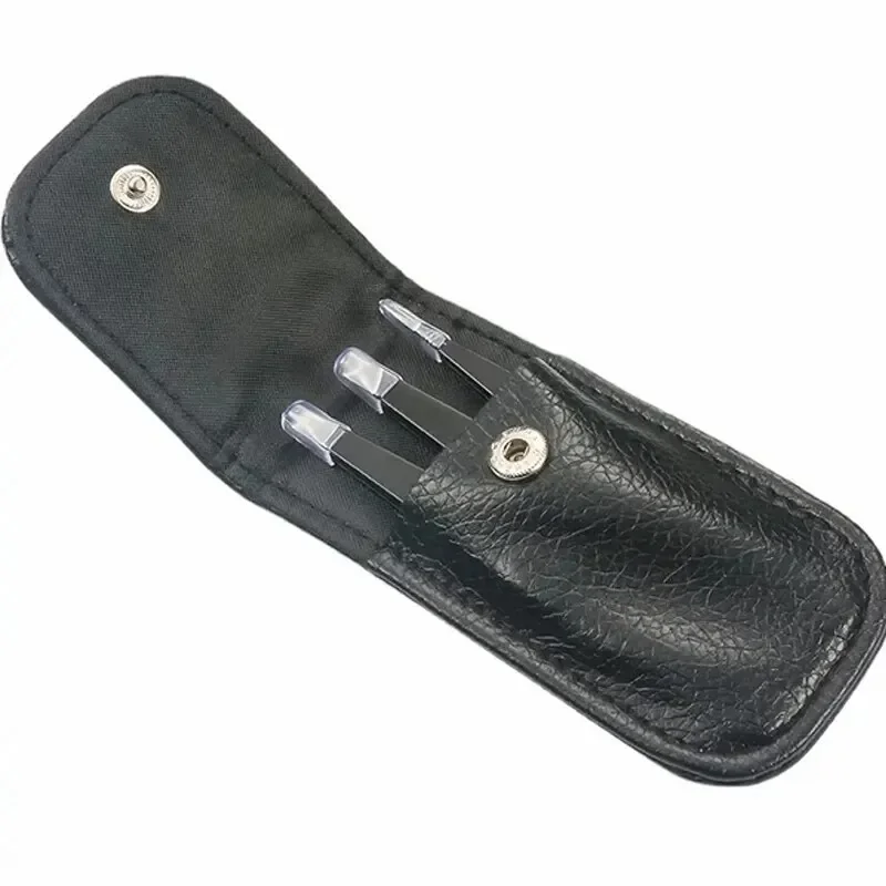 High Quality - This set of tweezers is made of stainless steel with a leather holster. The pointy of the tweezers are with a protective sleeve to cover tips.