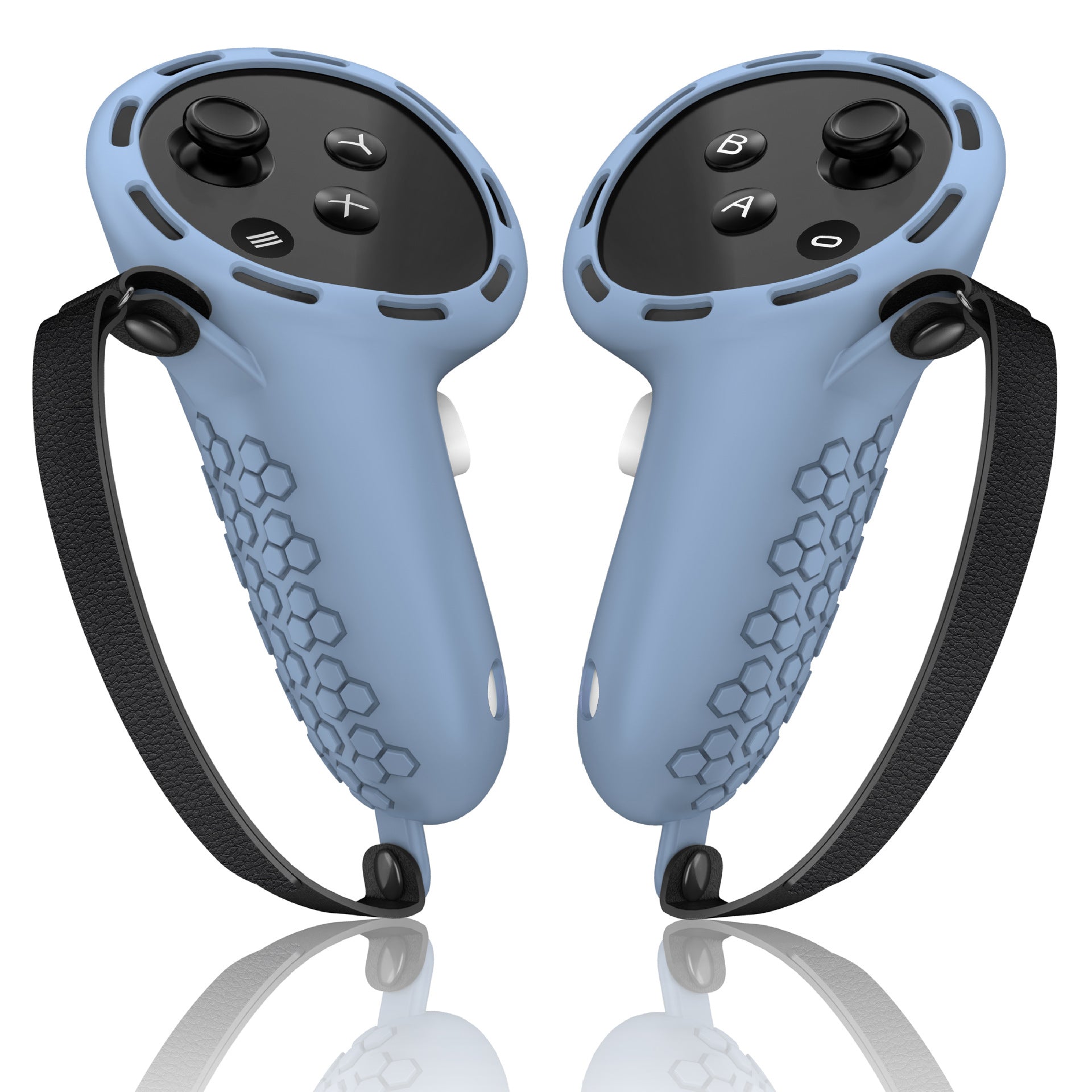 【Comfortable Controller grips cover for quest3 made of silicone material, it gives you a comfortable and soft touch when grasping the game controller for a long time. Moreover, we have added texture design to the grip contact surface to prevent slipping.