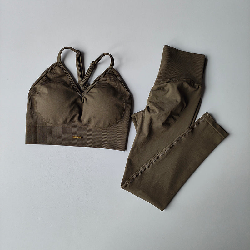 Seamless Hip Lifting Fitness Set Women's V-neck Bra Leggings Yoga Set