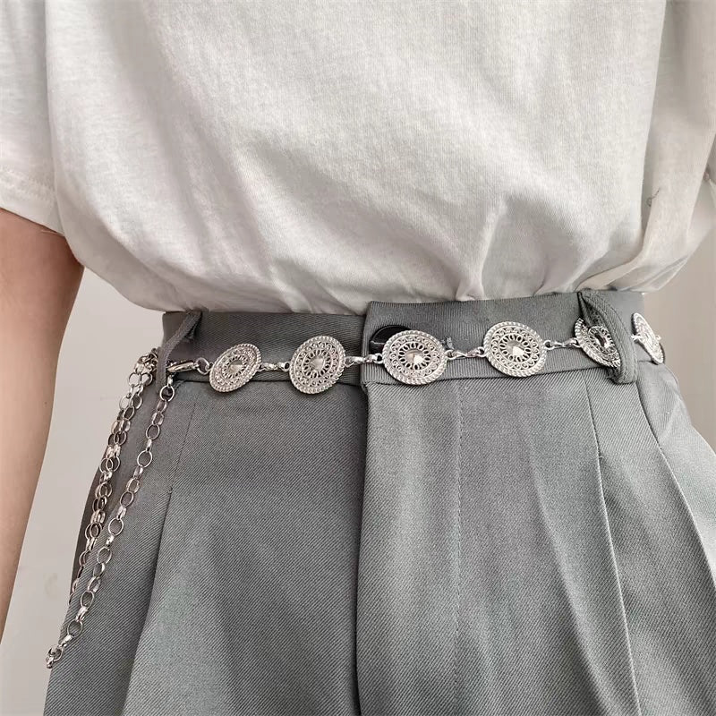 Elevate your summer wardrobe with this Silver Retro Waist Chain, a versatile metal chain belt designed for women. Its sleek, thin leather strap combined with a stylish silver chain adds a sophisticated edge to skirts and pants alike. Perfect for creating trendy, polished looks, this accessory offers both functionality and fashion, making it an essential piece for enhancing your outfits with a subtle yet striking detail.