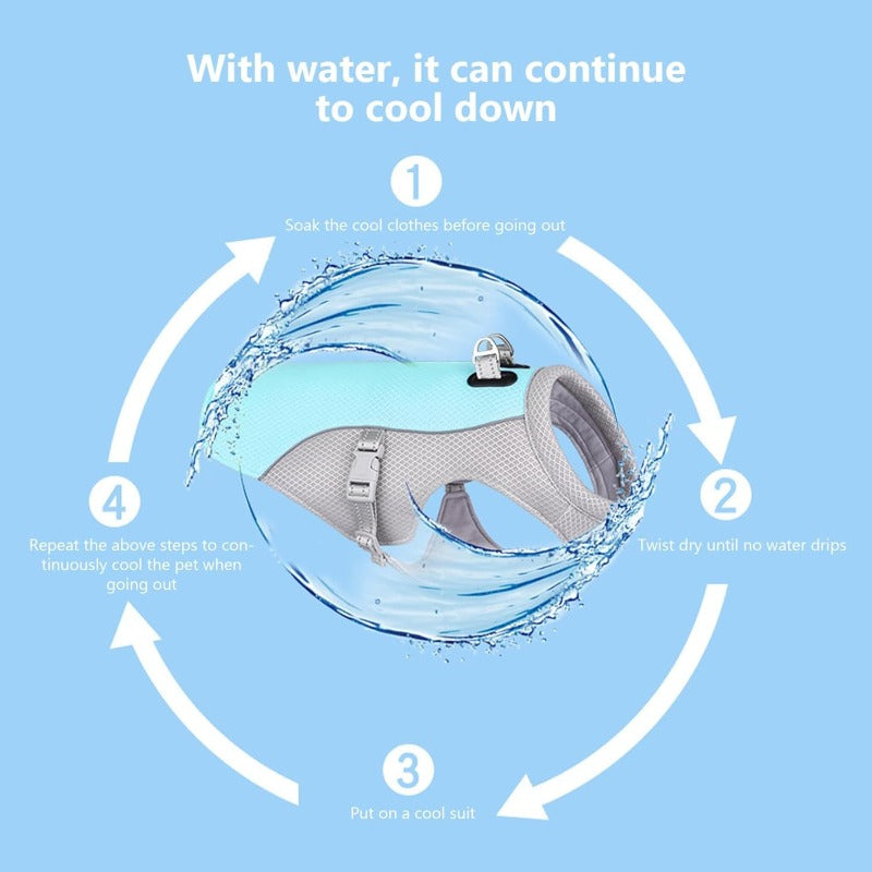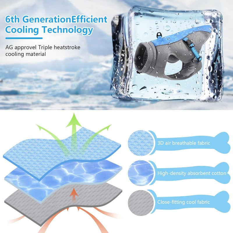 Beat the heat with this reflective summer cooling vest harness—designed to keep dogs of all sizes cool, safe, and comfortable during hot weather adventures.