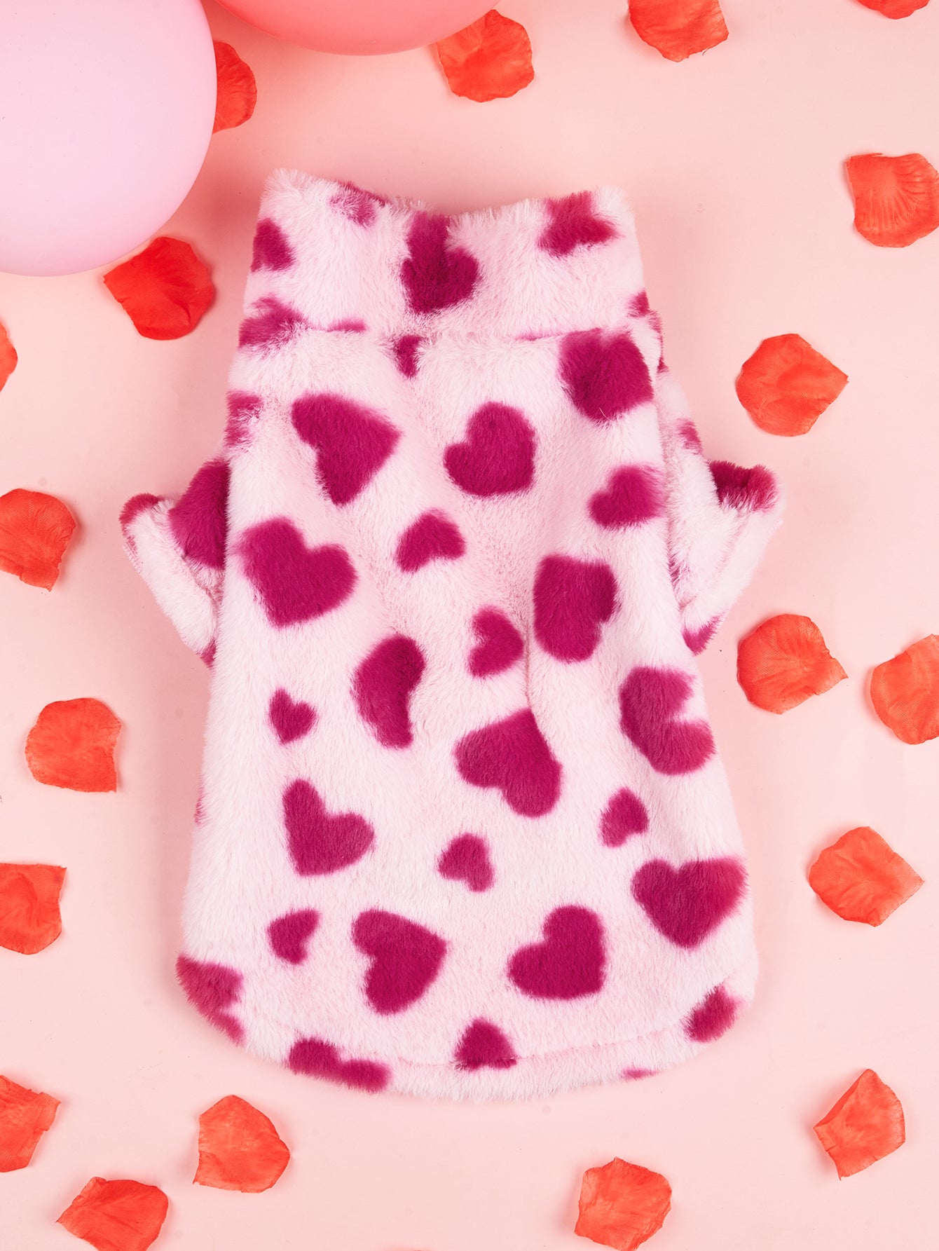 Super Soft Warm Winter Dog Jacket Hearted Print Plush Holiday