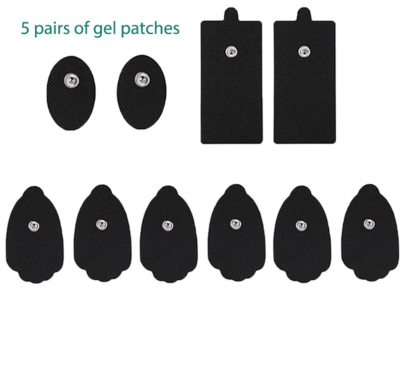 4.Free Dust-Proof Drawstring Storage Bag, Reusable Fastening Cable Ties and 10 Pcs of Self Adhesive Conductive Reusable Electrode Pads. No more cable mess after use with fastening cable ties. A quick and easy solution for tens lead wires management. Hassle free storage system for the tens massager and wires.Three different sizes of electrode pads can meet your various needs.