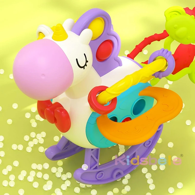 string toy has built-in colorful beads that make a pleasant sound when shaken,
