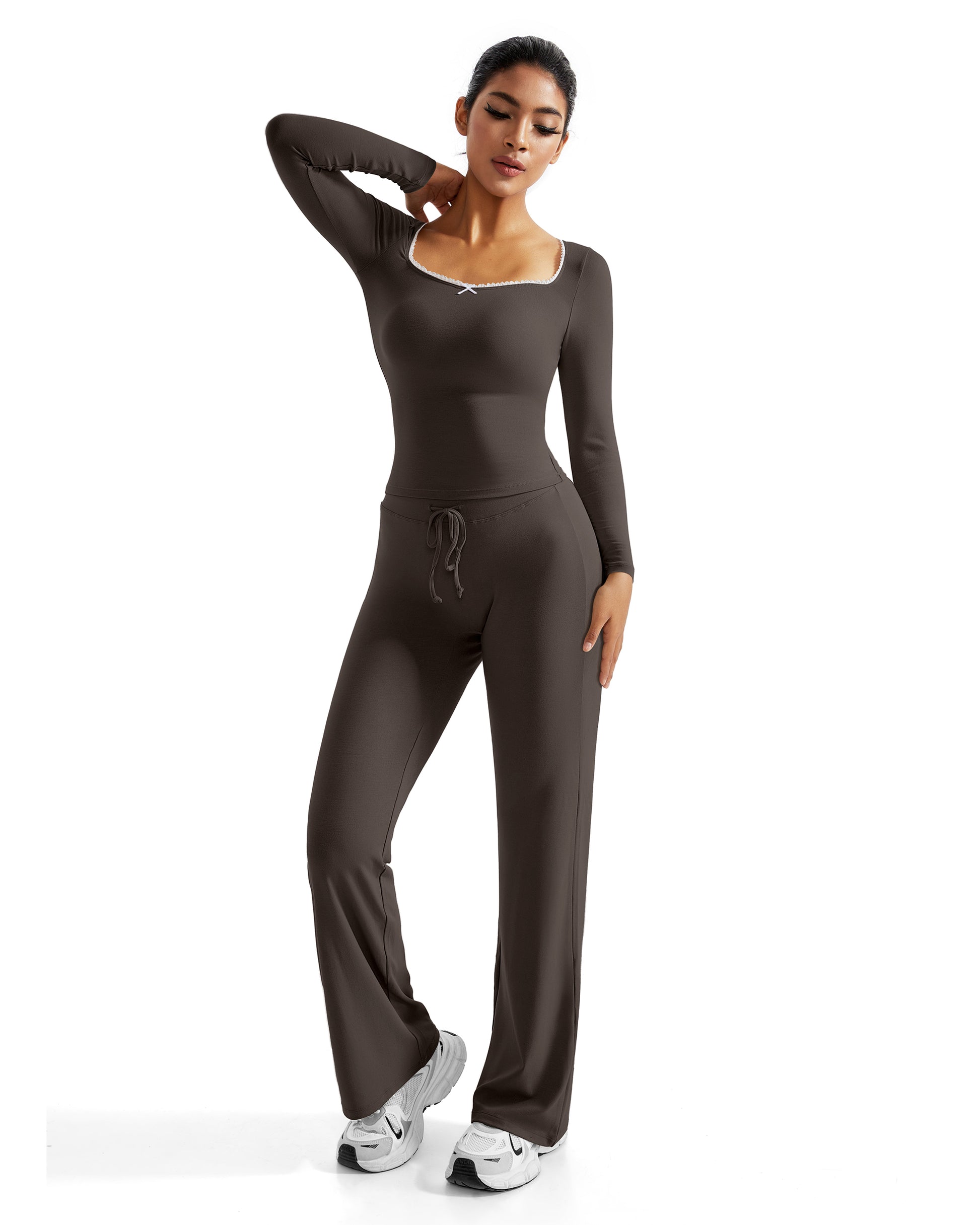 Upgrade your active wear with our Women Casual Suits 2 Pcs Set. Stay comfortable and stylish in our soft, wide leg pants and V neck, long-sleeved top. Perfect for yoga, workouts, or casual outings. Spring and autumn just got more fashionable and effortless with our sportswear outfit.