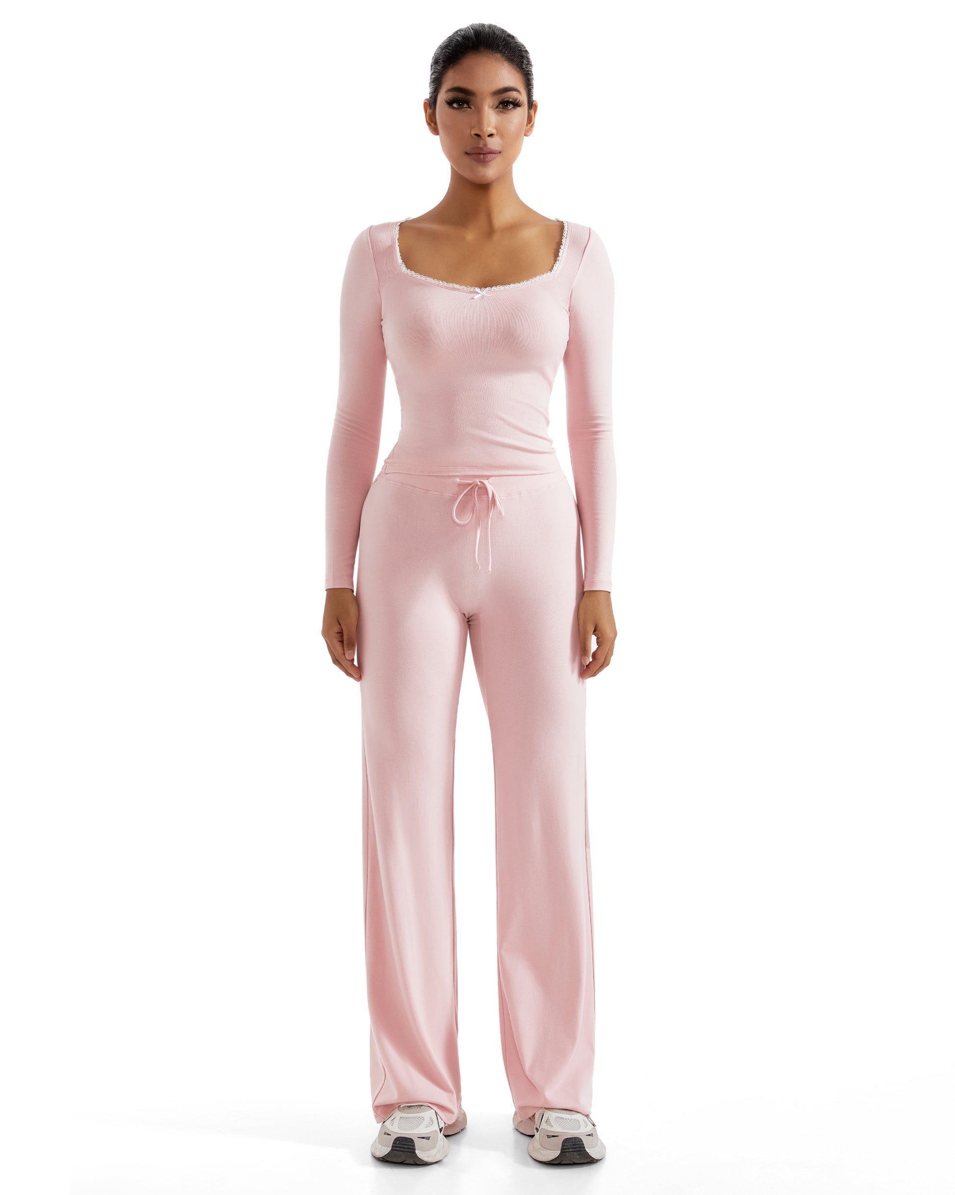 Women Casual Suits 2 Pcs Set Soft Wide Leg Pants Outfit Yoga Suits