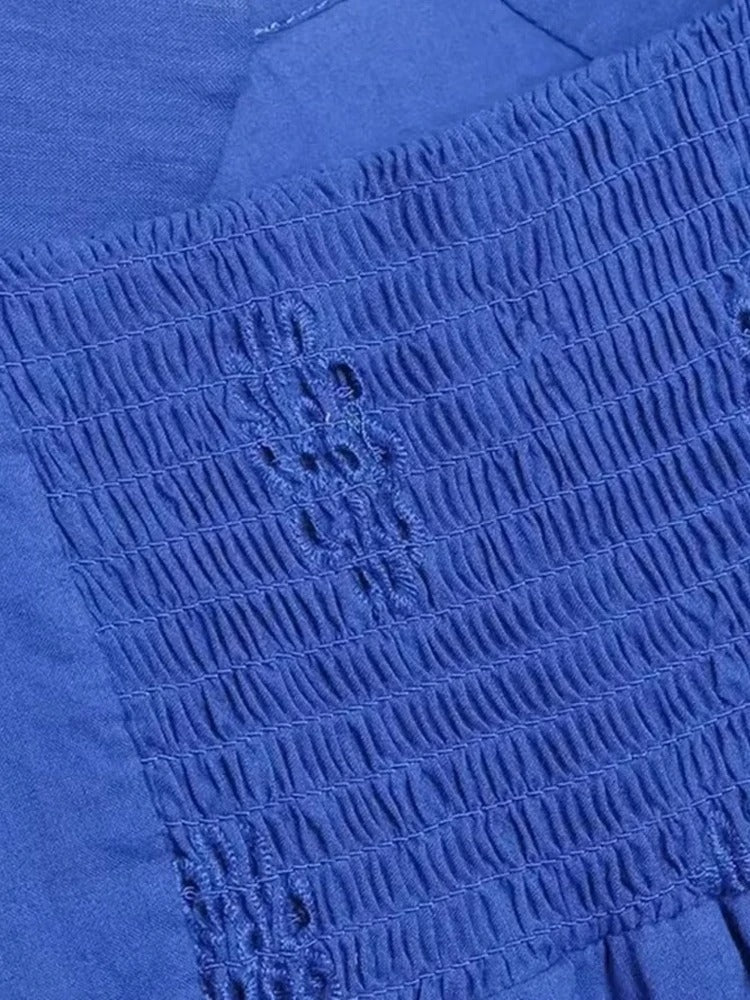 This women's fashion mini dress features ruffled cutwork embroidery, adding delicate texture and a touch of elegance. The intricate detailing showcases expert craftsmanship, making it a must-have for any stylish wardrobe. Upgrade your look with this versatile and stylish piece.