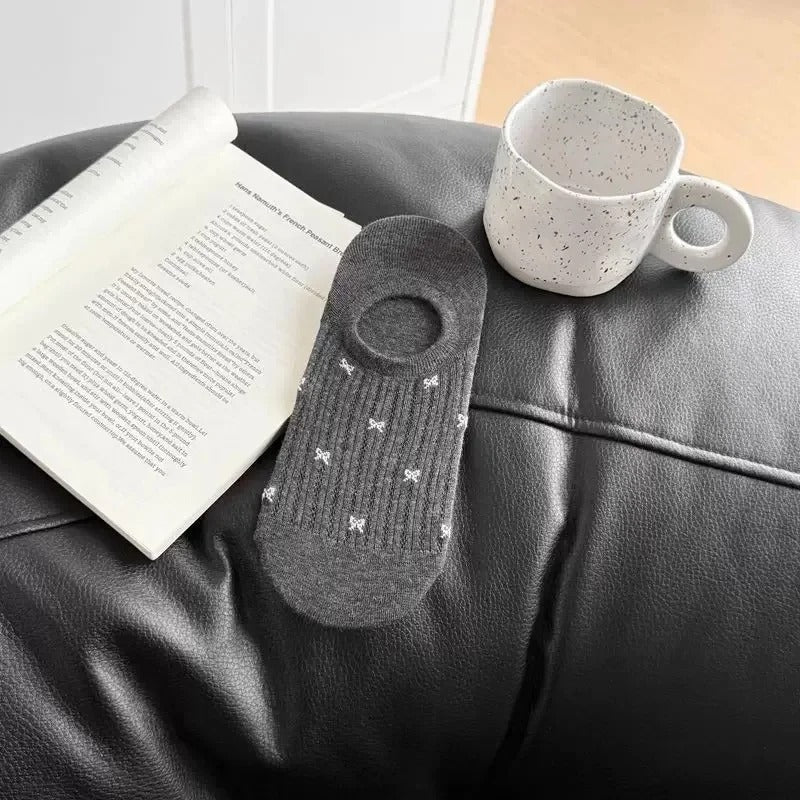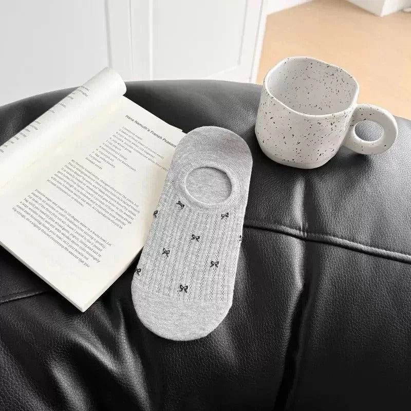 These Women's Butterfly Knot Boat Socks are designed for summer comfort with a low-cut, invisible fit that stays discreet inside your shoes. Crafted from breathable, thin fabric, they keep your feet cool and dry. The anti-slip feature ensures they stay securely in place during wear, making them ideal for home or casual outings. Perfectly combining style and functionality, these socks provide all-day comfort for ladies seeking a reliable, lightweight option.