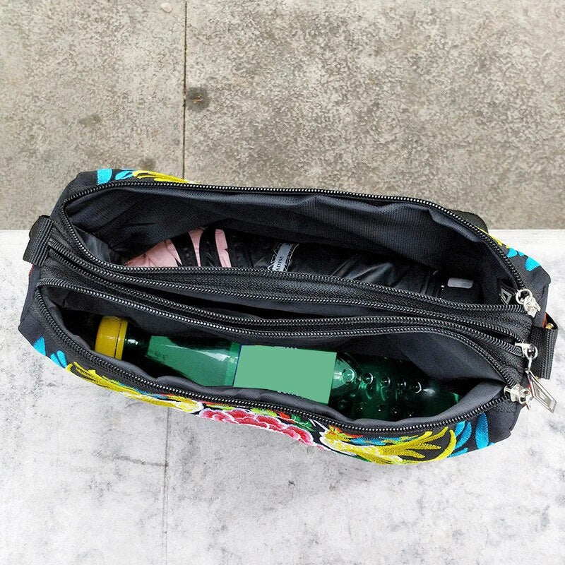 Women's Embroidered Flowers Nylon Crossbody Bag Ladies Luxury Large Capacity Travel Shoulder Bags