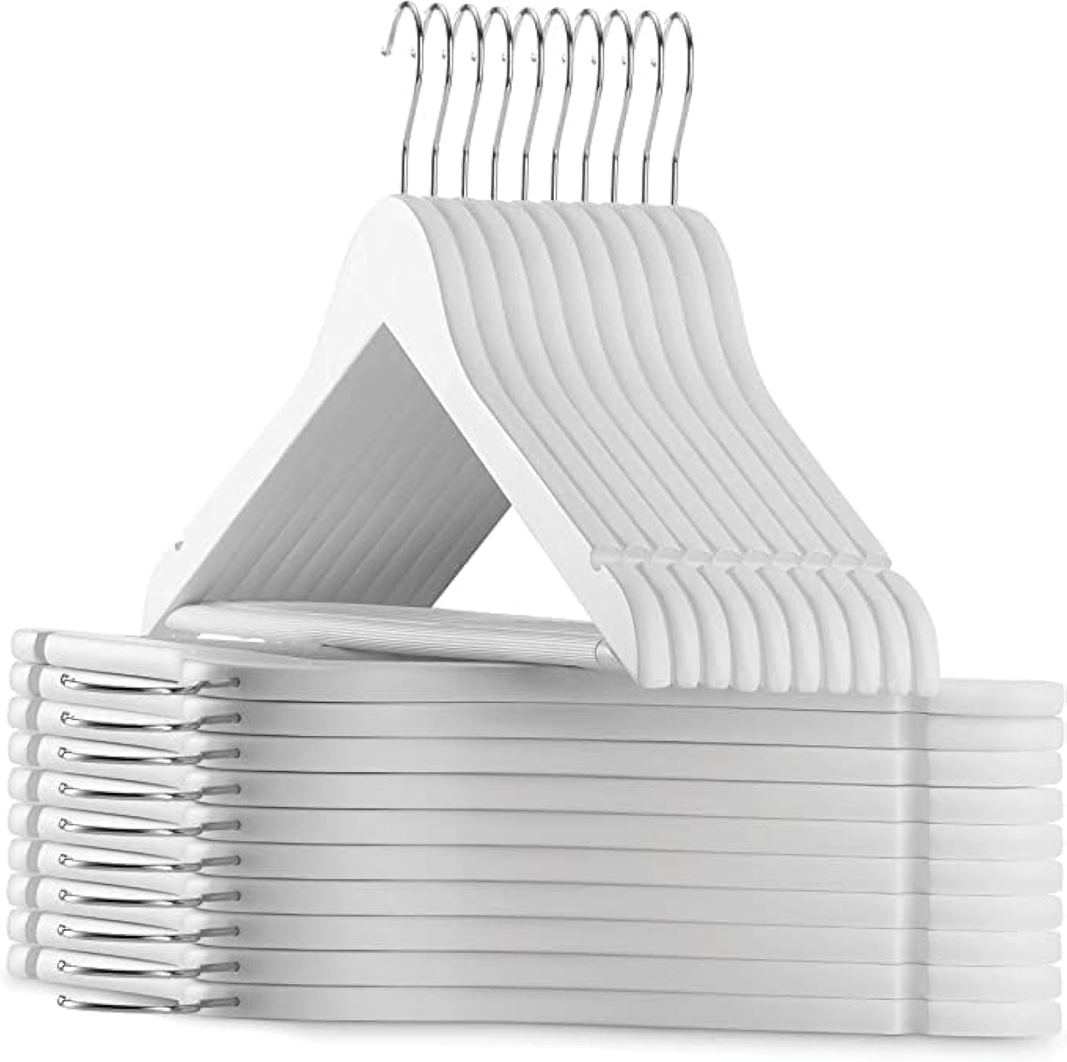 Maximize your closet space with our Wooden Hangers - a 20 pack of heavy duty, non-slip wood hangers perfect for organizing your coats, jackets, suits, and pants. Enjoy the durability and sleek design of these hangers, keeping your clothes securely in place while adding a touch of elegance to your wardrobe.